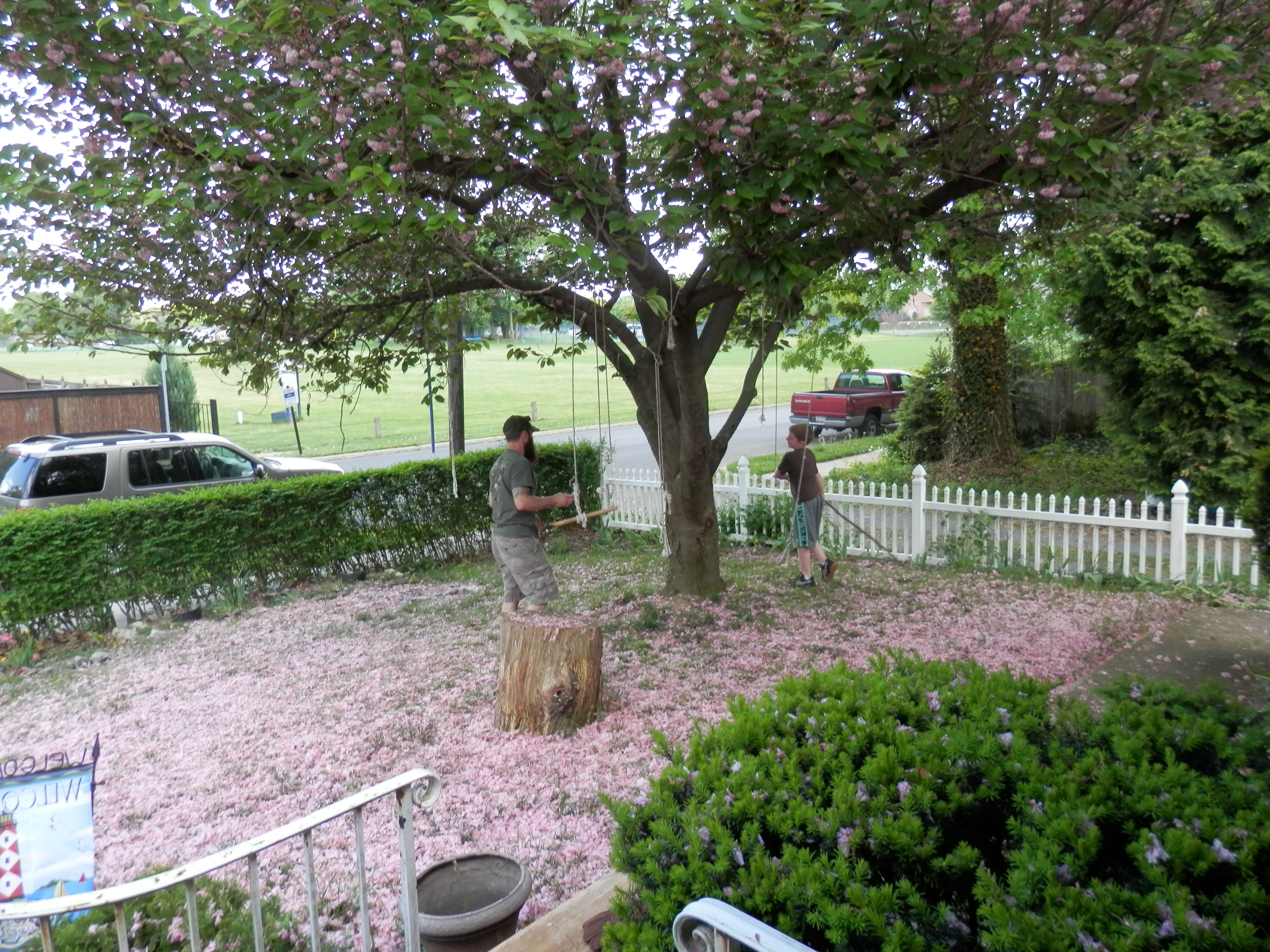 The side of our home is a bit of an eyesore, but our neighbors to that side also store lawn equipment and tools on that side of their house, so it seems the best place to put things for now. This area is covered in front by shrubs, and is not visible except if one goes all around to the far side of our home in the back. I plan to cover the grass and make this a gravel path. The pipe was a project of last spring, which took many days and has truly helped with rain run off entering our Basement during Flash Flooding. We have yet to cover the entire pipe.