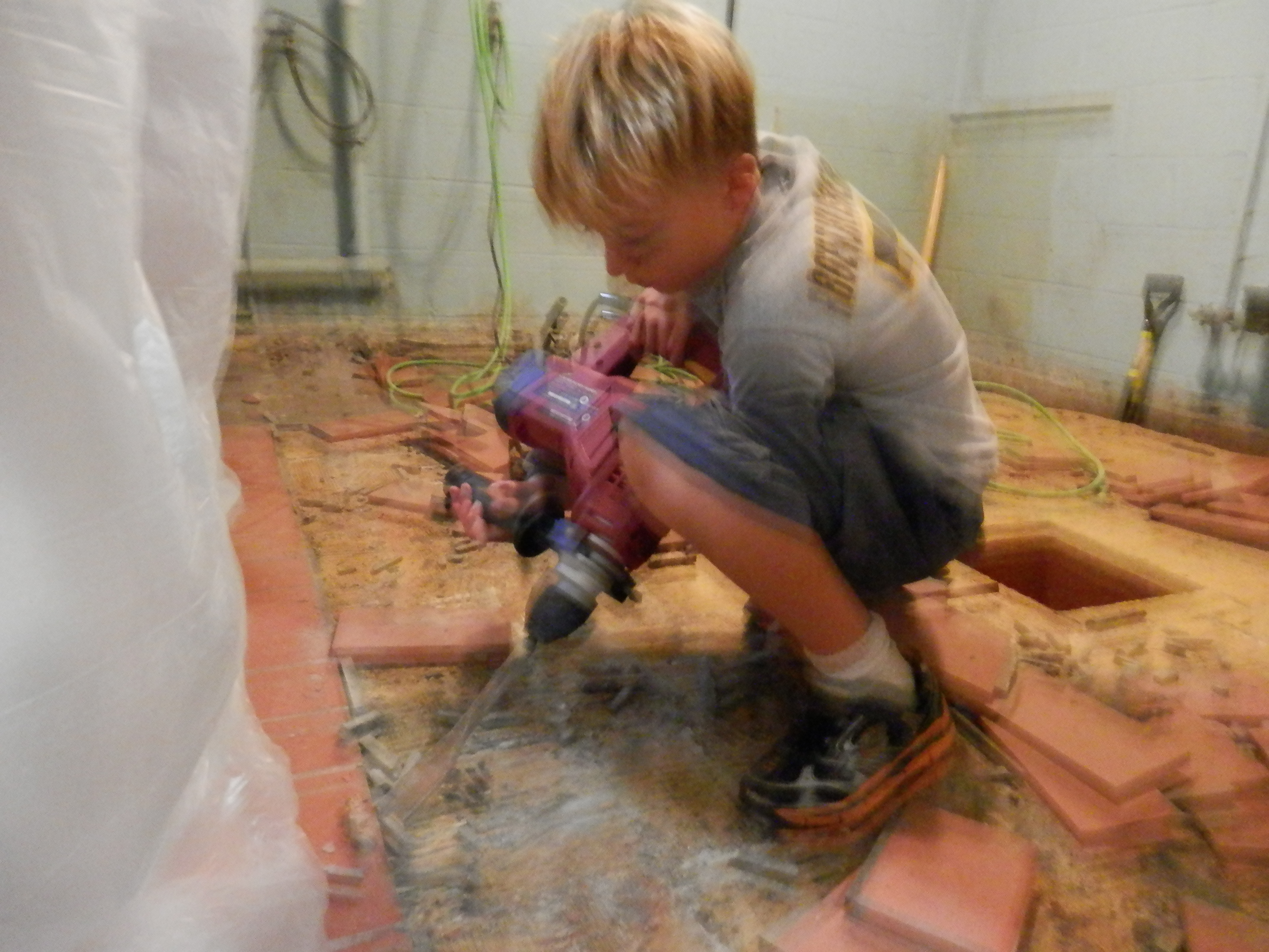 The cracking of the cement floor and the hum of the tools made lots of noise.